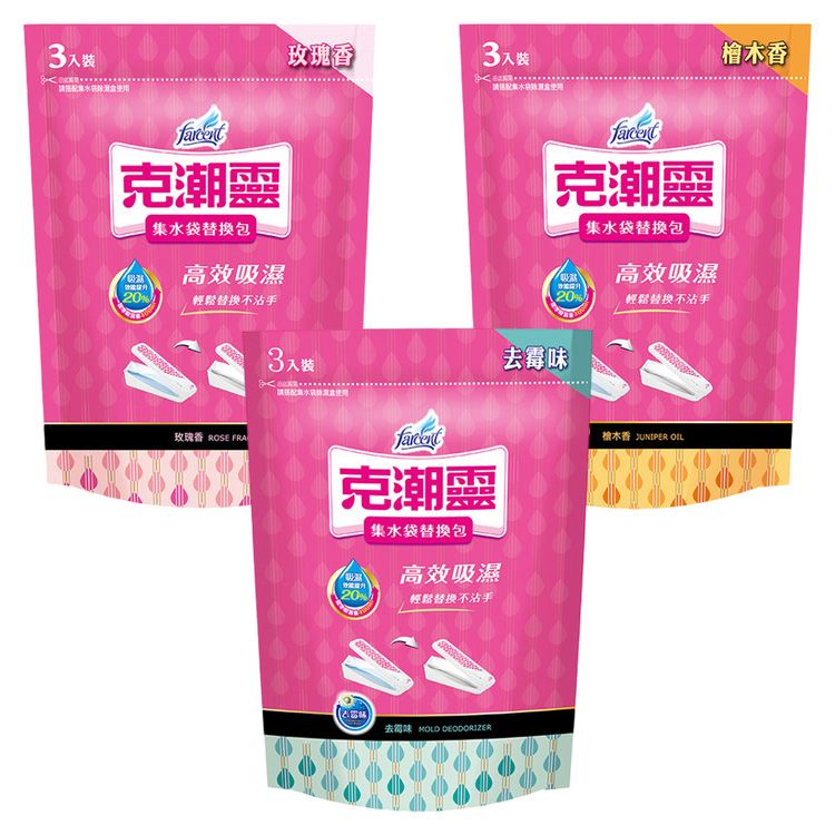 克潮靈~集水袋補充包(3入) 玫瑰香/去霉味/檜木香 3款可選 替換包