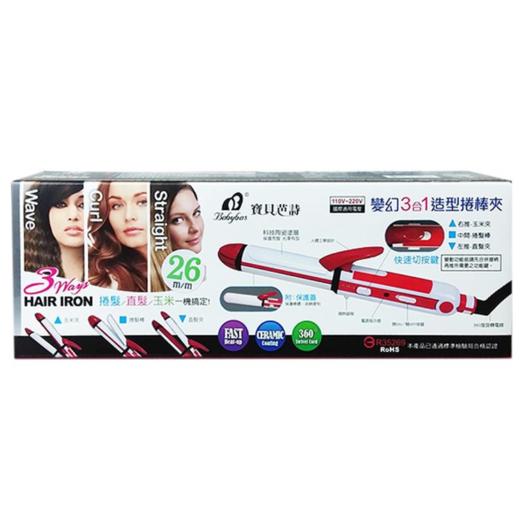 Babybas 寶貝芭詩~變幻3合1造捲棒夾26mm(1支入) 電棒捲