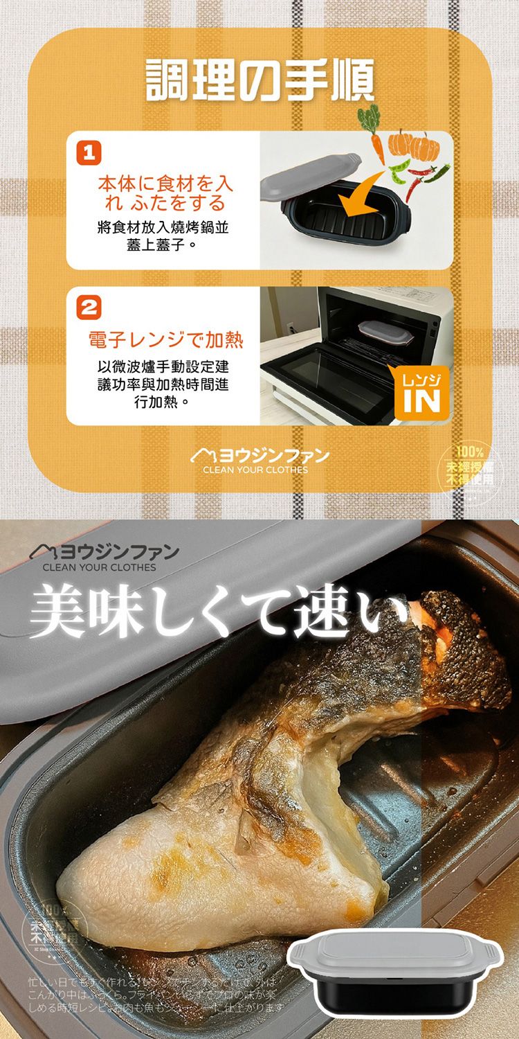 - 吸收微波並轉化為熱能,實現如同直火料理般的本格烹調效果