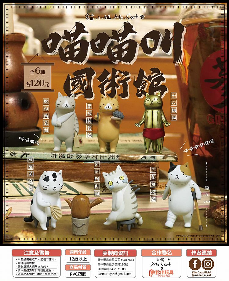- 針針到肉貓/煎藥苦命貓/脫臼藥袋貓/三花拐拐貓/發功刺刺貓/十八銅貓