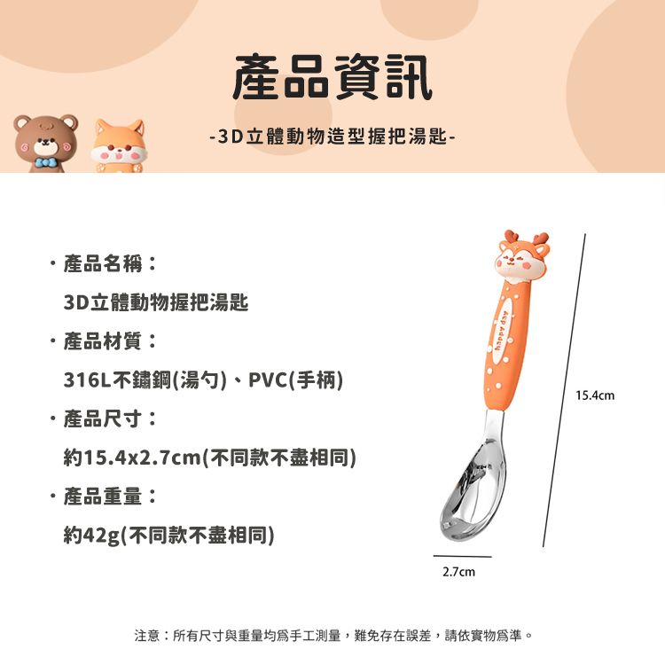 優惠款 316不鏽鋼動物造型湯匙(1入) 隨機出貨 NG品