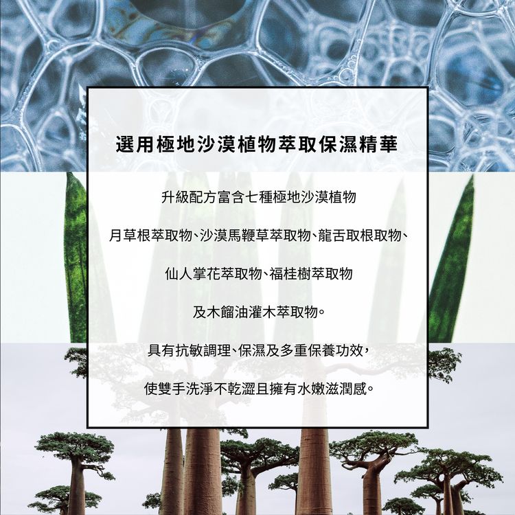 - 保濕及多重保養功效,使雙手洗淨不乾澀且擁有水嫩滋潤感