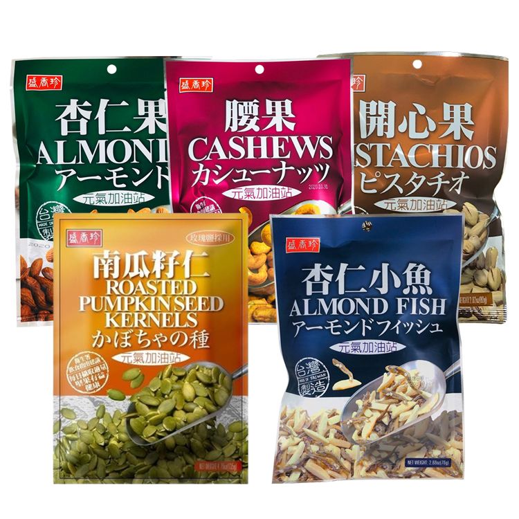 盛香珍~開心果/腰果/杏仁果/杏仁小魚/鹽烤南瓜籽仁(1包入) 款式可選
