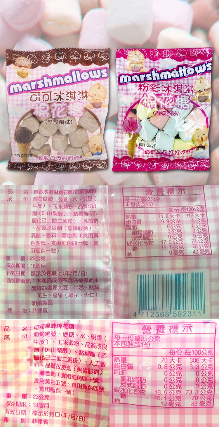 粉彩(香草風味)/可可(可可風味)冰淇淋棉花糖(1包入) 款式可選