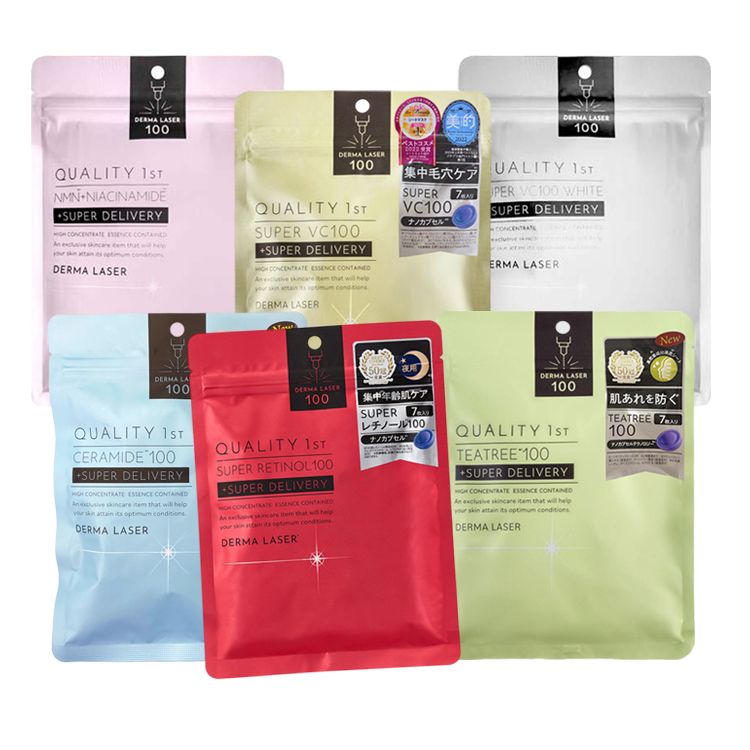 - VC100亮白(銀)/維他命B3嫩白保濕(粉)/茶樹舒緩(綠)/VC100修護(金)/神經醯胺保濕面膜(藍)/高濃度的視黃醇夜間抗細紋(紅)夜用