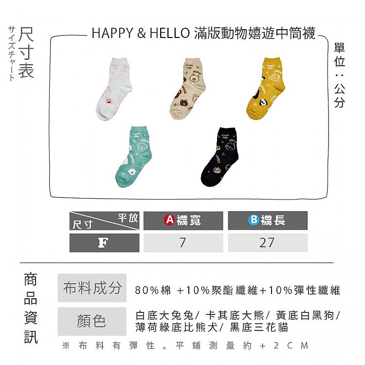 AMICA ~WL25SS07#滿版動物嬉遊中筒襪(1雙入) 款式可選
