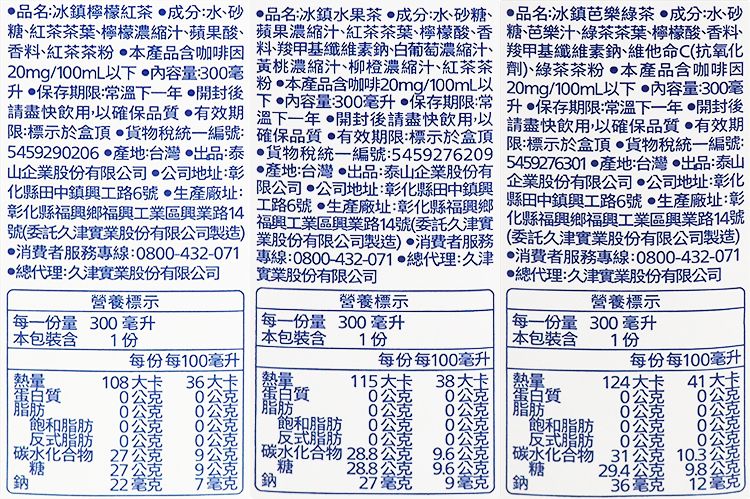 泰山~冰鎮檸檬紅茶/水果茶/芭樂綠茶(300mlx6入) 款式可選