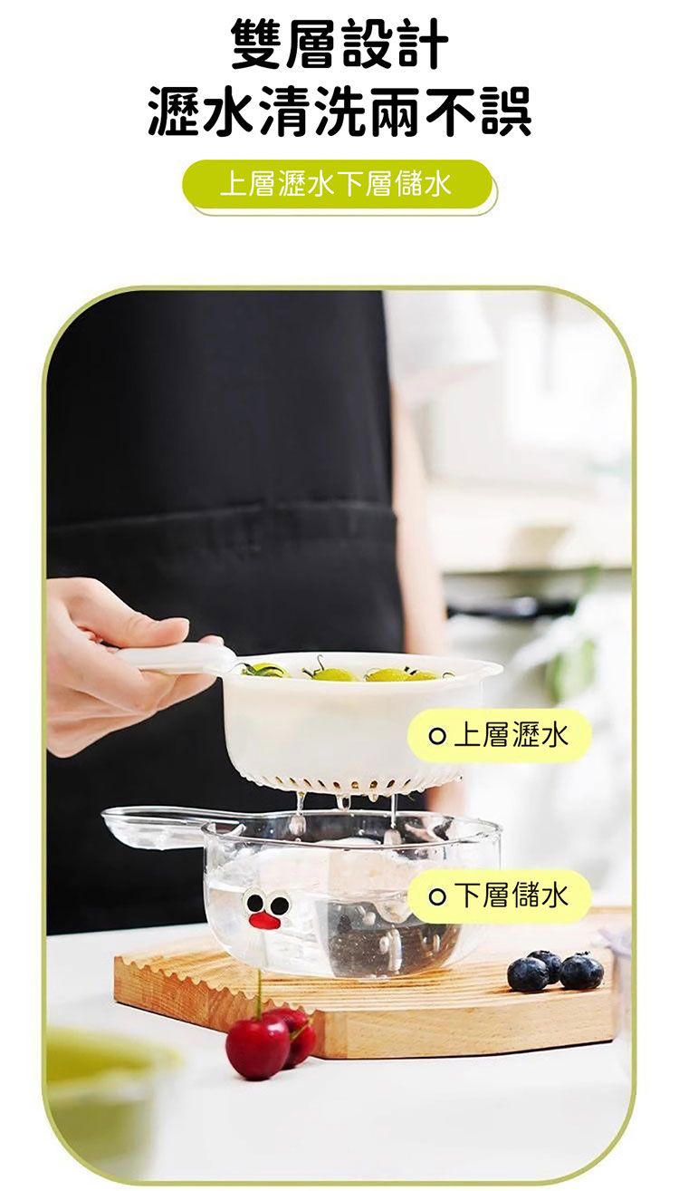 - 上層瀝水,下層儲水,清洗水果好搭檔