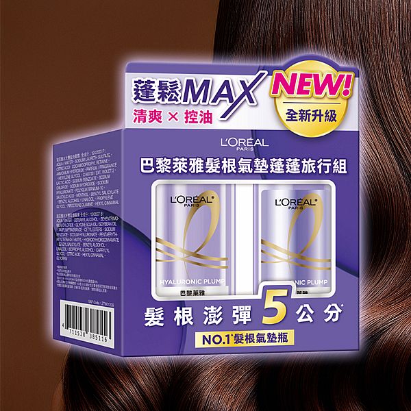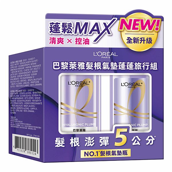 L'OREAL 巴黎萊雅~髮根氣墊蓬蓬旅行組(洗髮露100ml+護髮素100ml) 髮根氣墊瓶