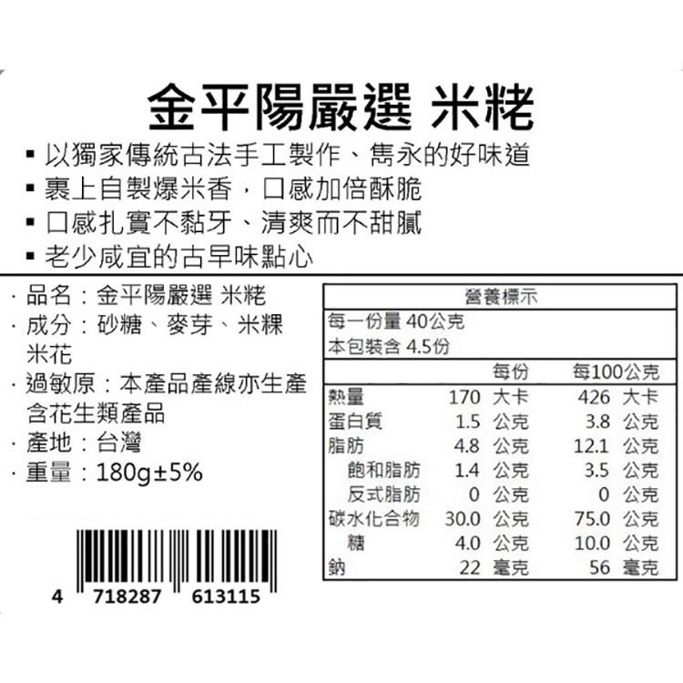 金平陽嚴選~花生粩(土豆佬)/麻粩(麻佬)/米粩(米佬)180g 款式可選