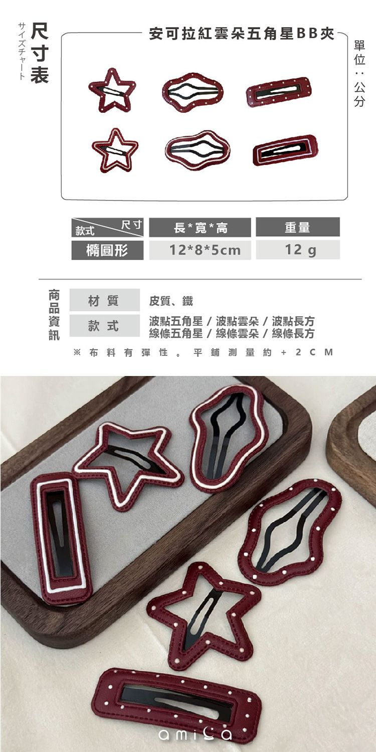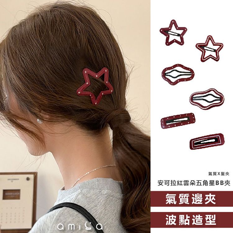 AMICA~1024#安可拉紅雲朵五角星BB夾(1入) 款式可選