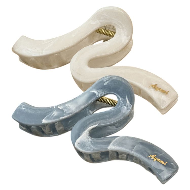 AMICA~0869#藍白色系紋理幾何抓夾(曲線款)1入 款式可選