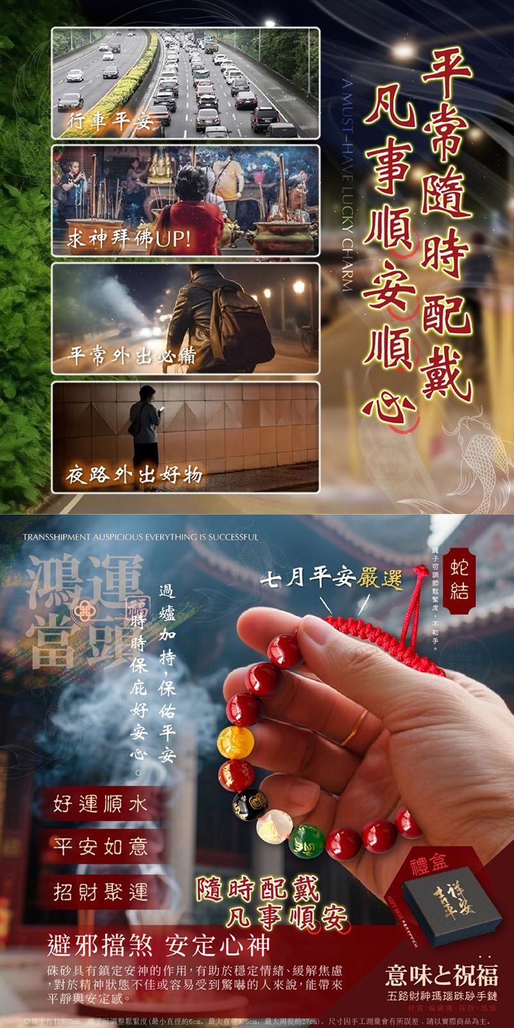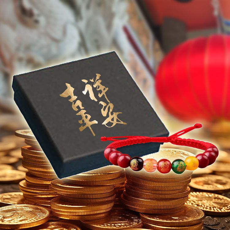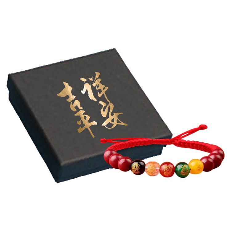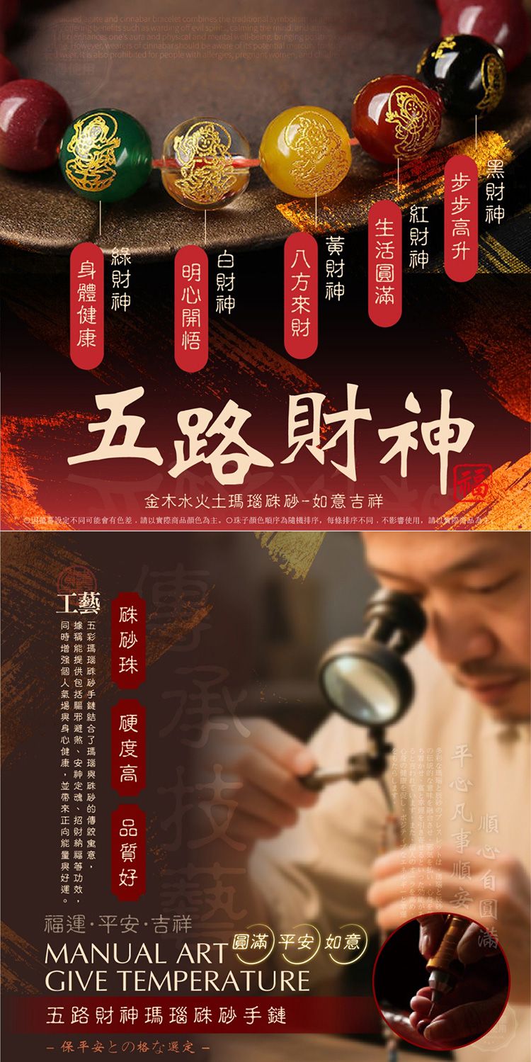 五路財神守護高訂瑪瑙硃砂手鏈(精美盒裝)1入