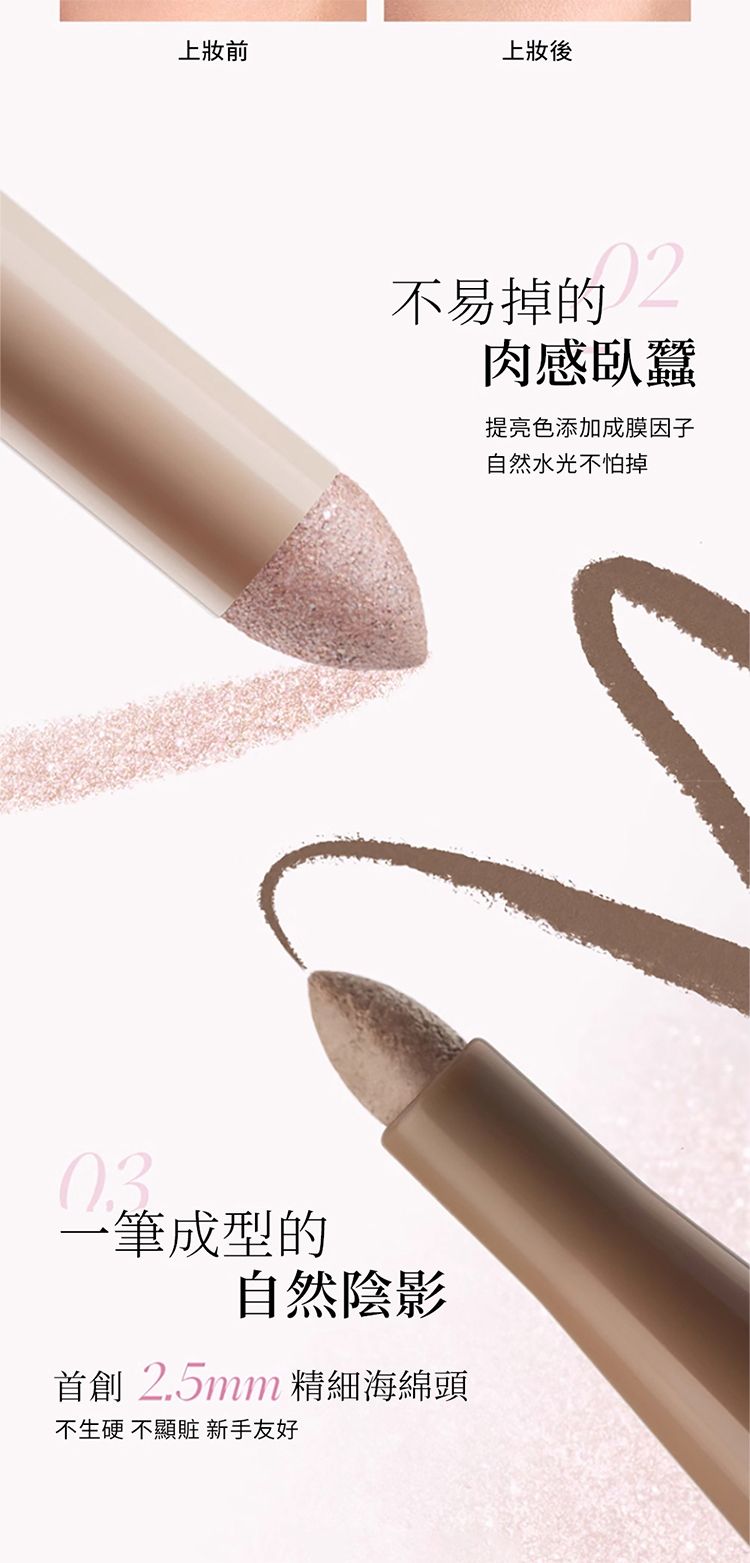 - 柔滑仿生質地,一筆實現天生澎潤臥蠶