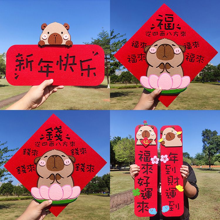 卡皮巴拉毛氈磁吸對聯四件套(1組入) 款式可選