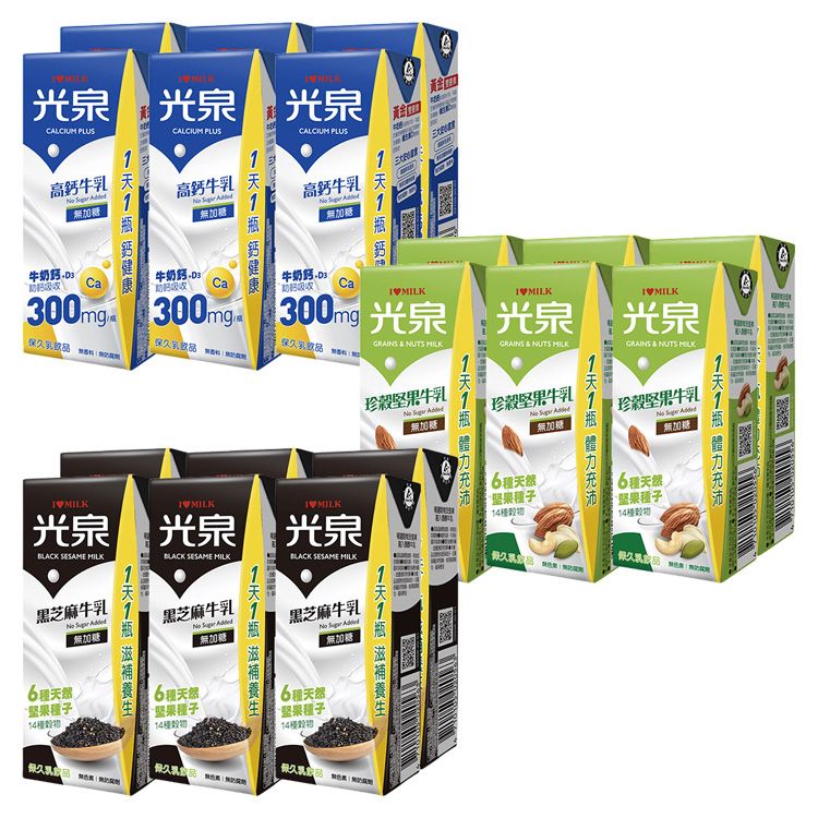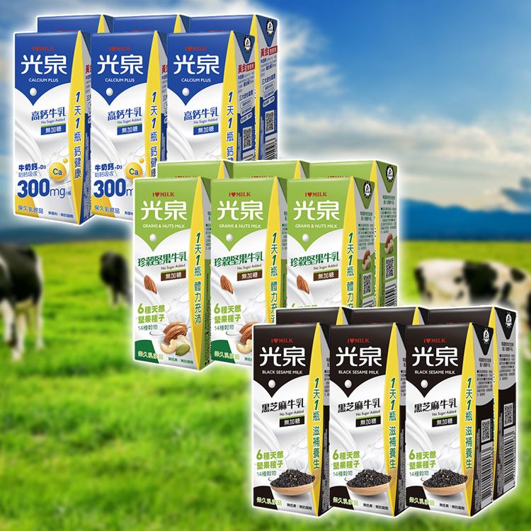 光泉~高鈣/珍穀堅果/黑芝麻牛乳(無加糖)200mlx6入 款式可選