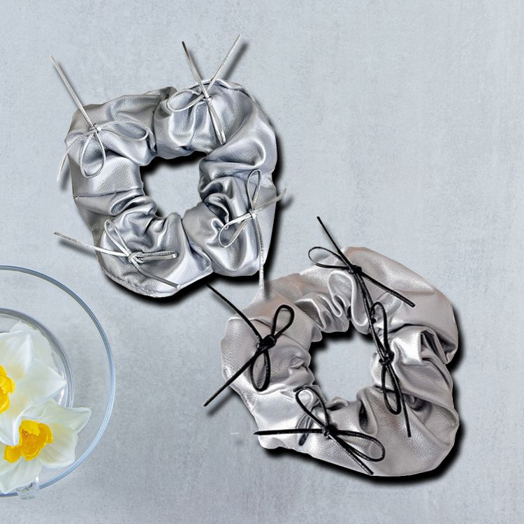 銀色蝴蝶結皮質大腸圈(黑/銀) 1入 款式可選