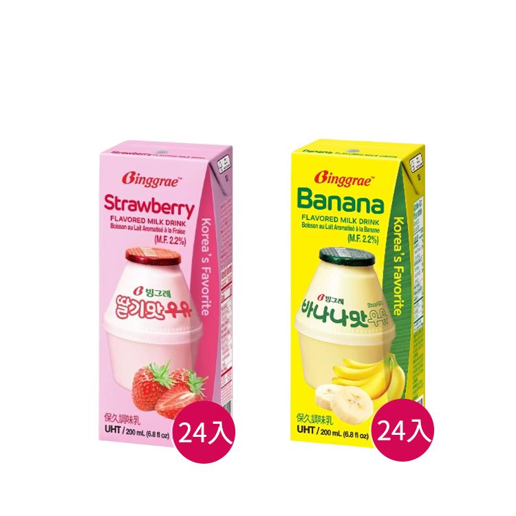 (箱購)Binggrae~香蕉 / 草莓牛奶保久調味乳(200mlx24入) 款式可選 包裝隨機出貨 ※限宅配 美式賣場熱銷