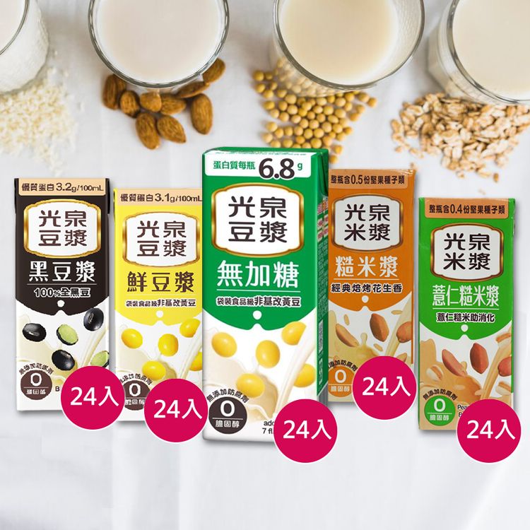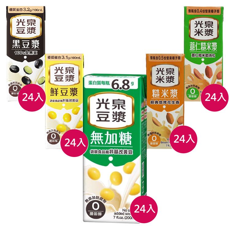 (箱購)光泉~黑豆漿/鮮豆漿/糙米漿/薏仁糙米漿/無糖豆漿(200ml*24入) 款式可選 ※限宅配