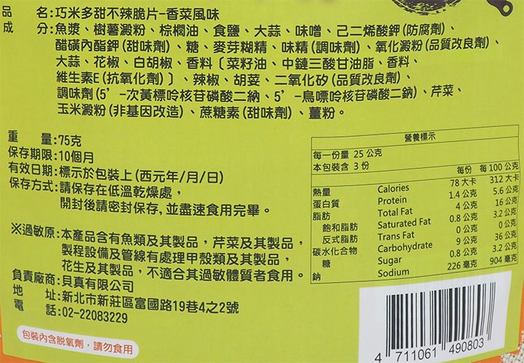 巧米多~甜不辣脆片(香菜風味)75g