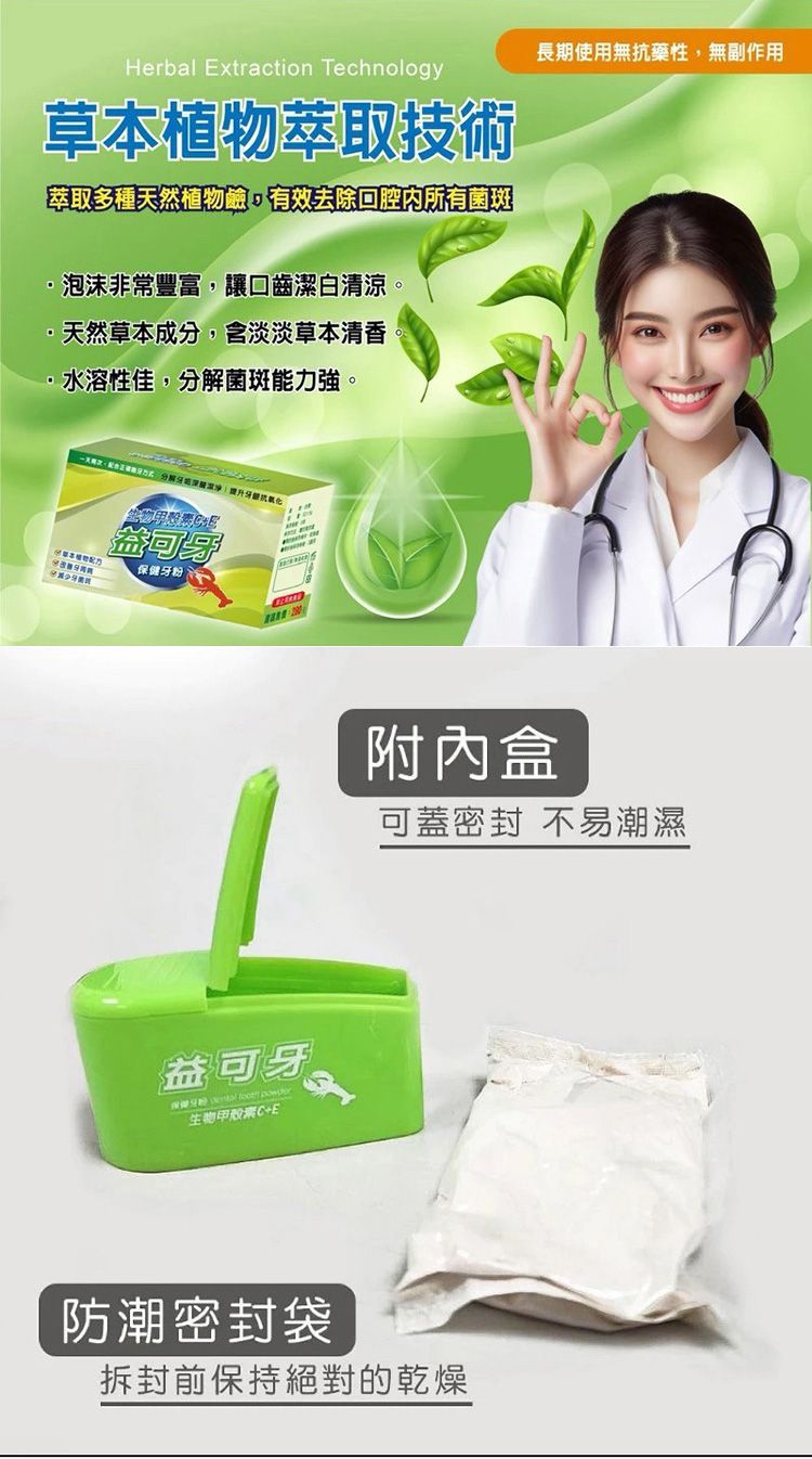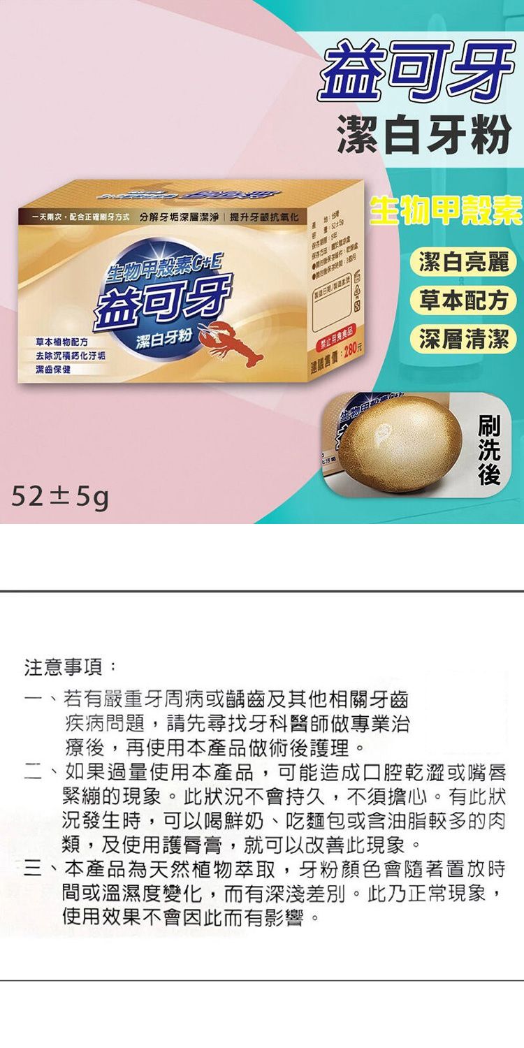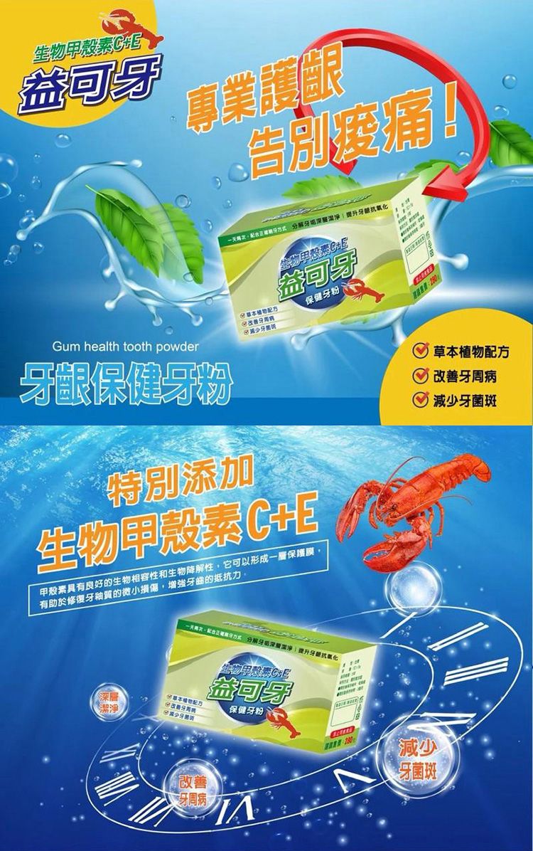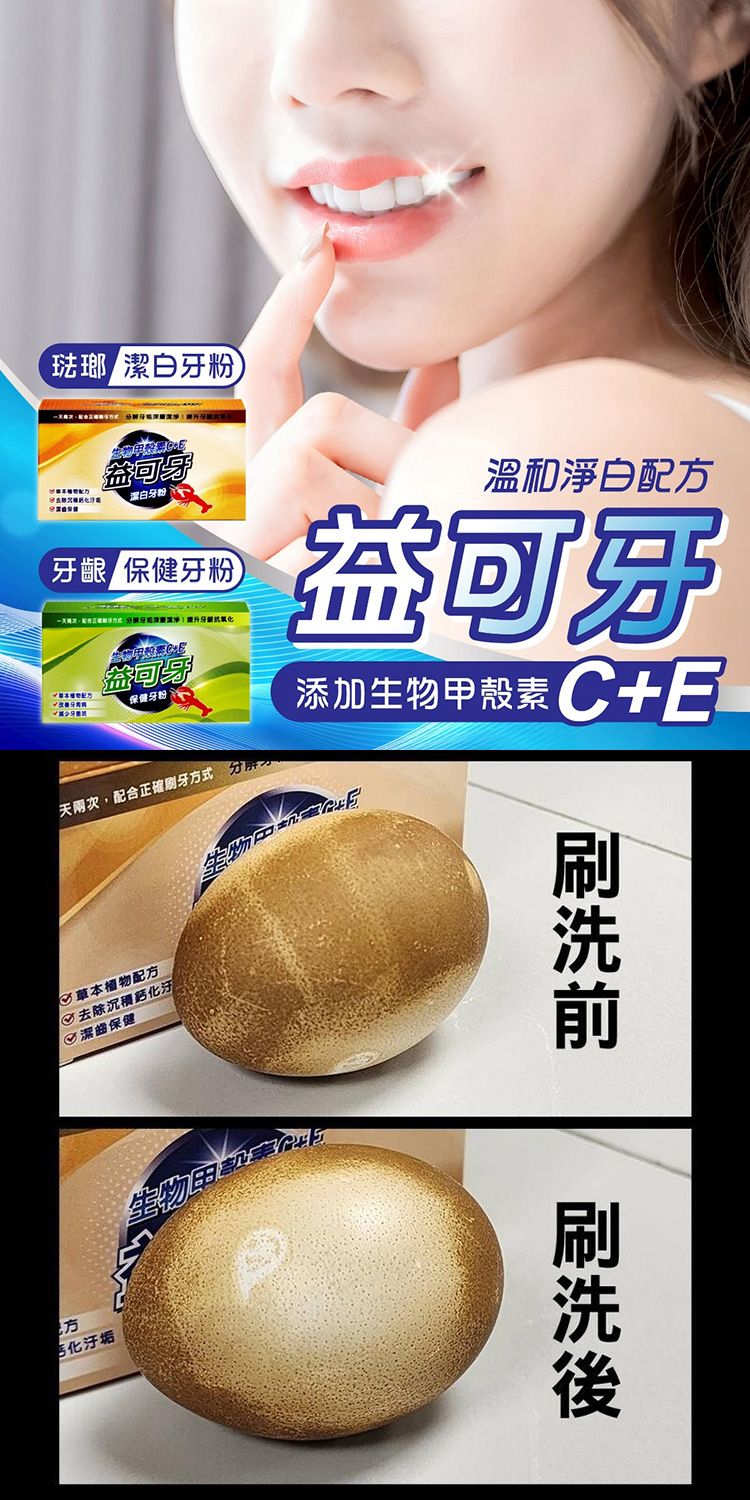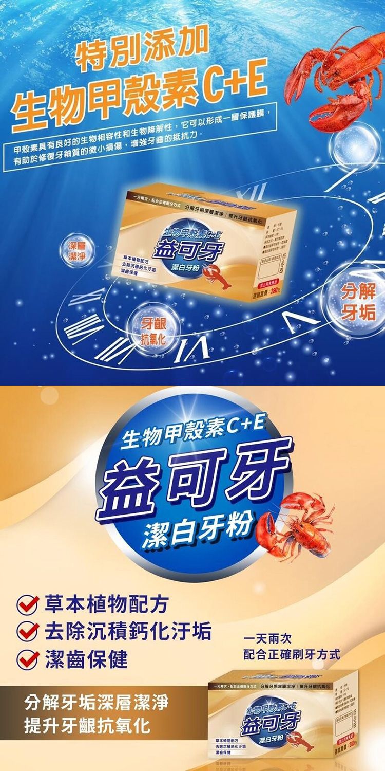 - 添加生物甲殼素 C+E,日常潔牙清潔