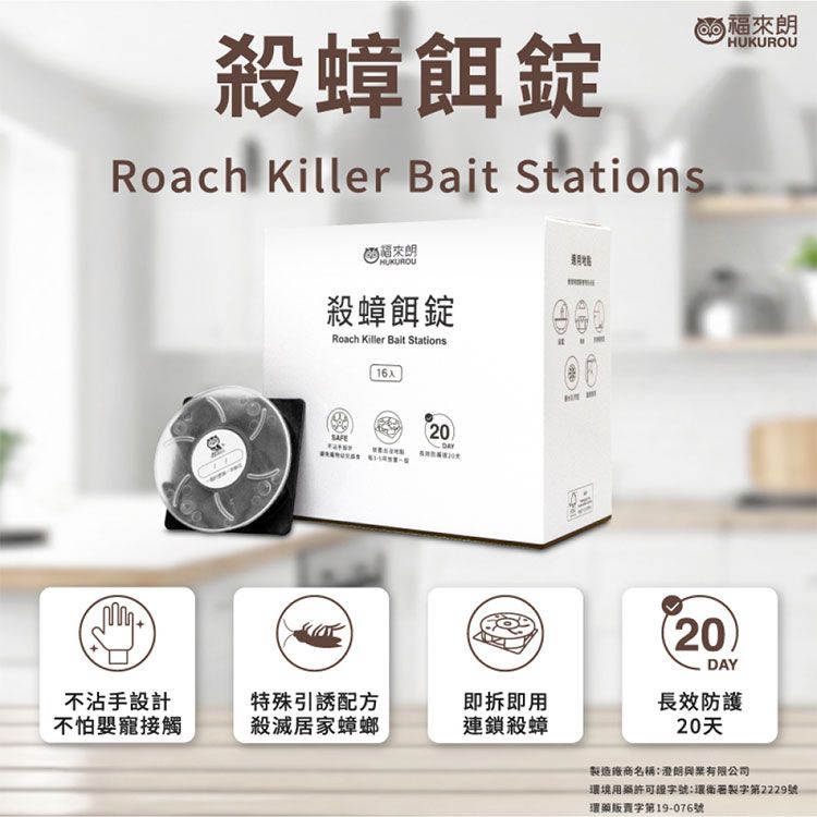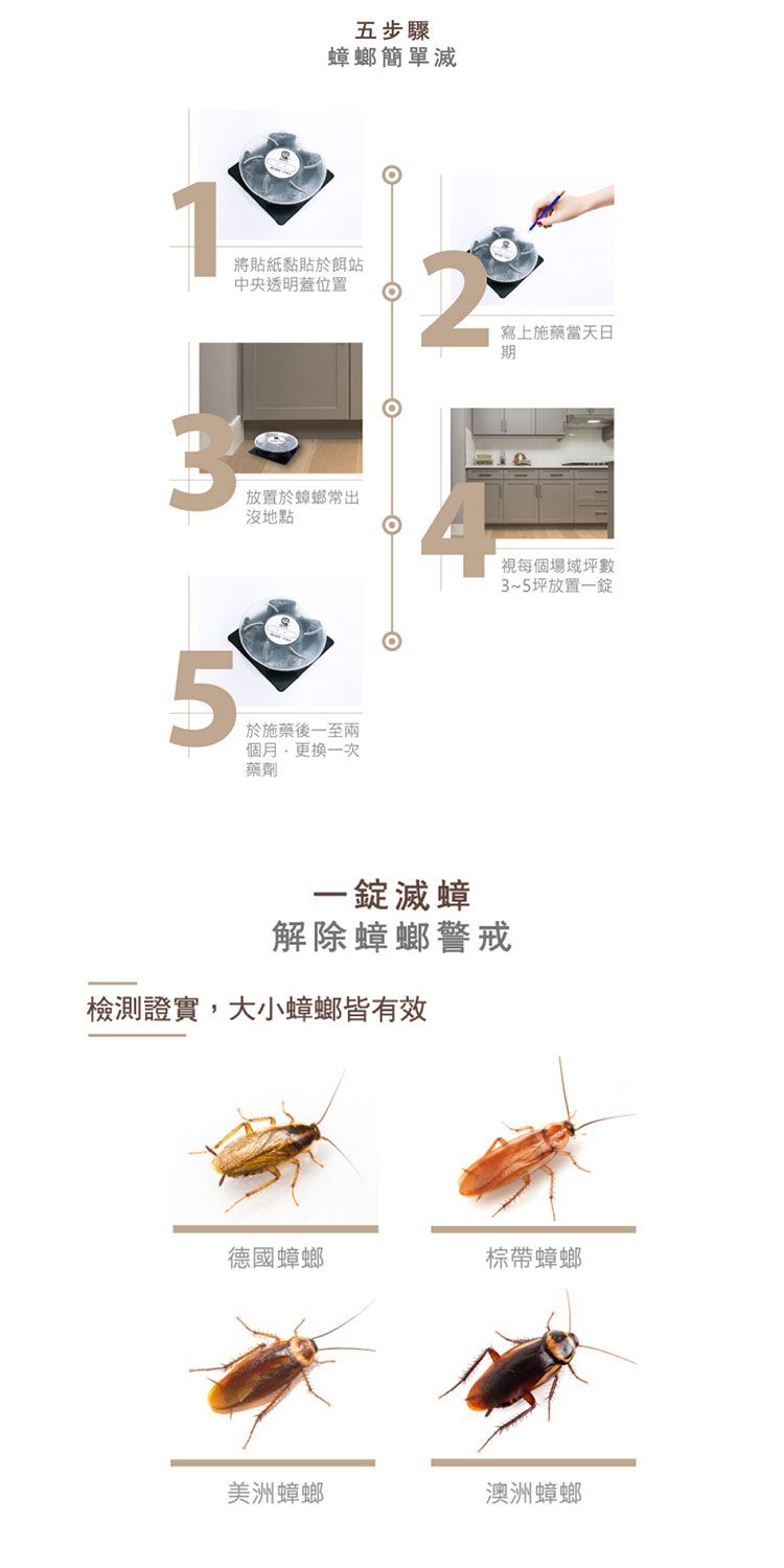 - 特殊引誘配方,有效吸引並滅除蟑螂