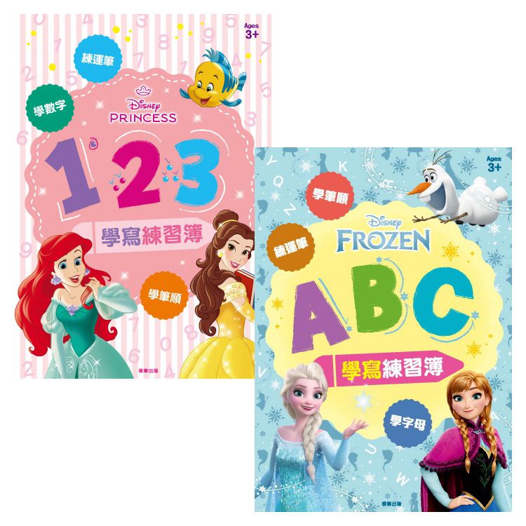 - ※本頁面販售款為「123學寫練習簿(迪士尼公主)、ABC學寫練習簿(冰雪奇緣)」,圖片其他款式僅供參考!