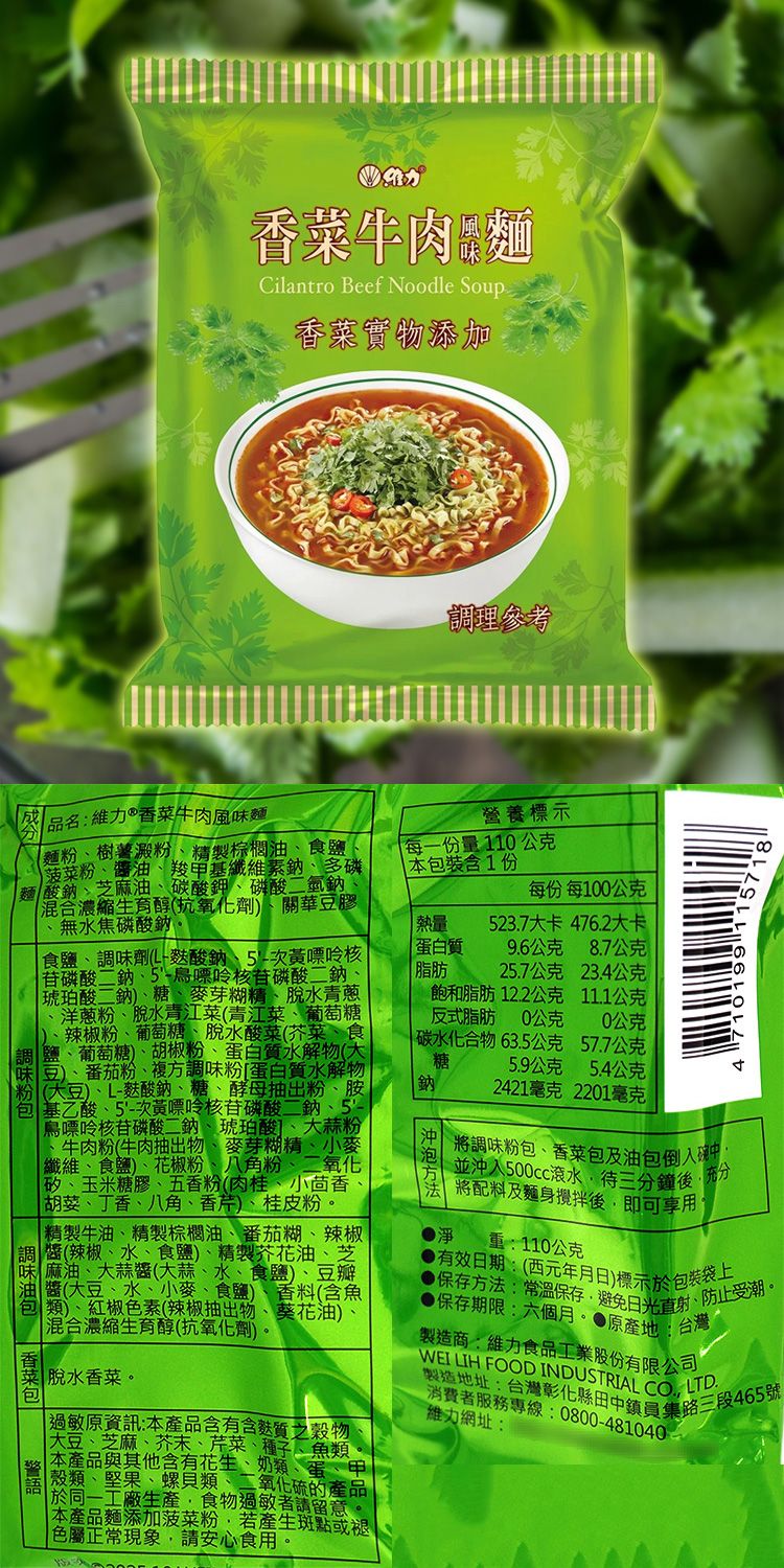 維力 Wei Lih~香菜牛肉風味麵(110g) 美式賣場熱銷
