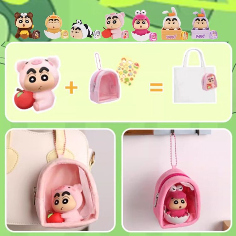 - 每一款都有附一個專屬配色吊飾娃包和貼紙~快來帶蠟筆小新一起出門玩!