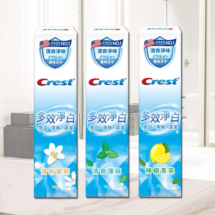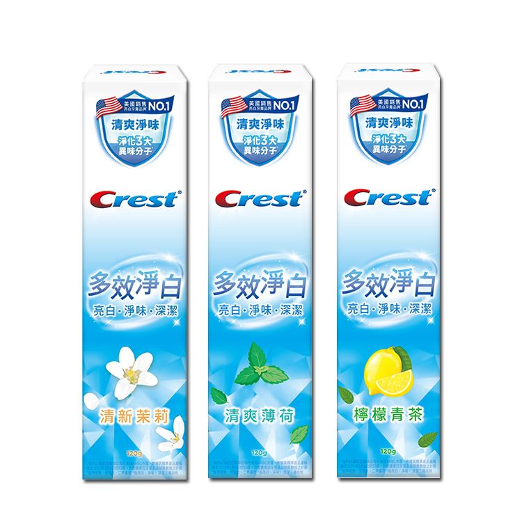 美國 Crest~多效淨白牙膏 (120g) 檸檬青茶/清爽薄荷/清新茉莉 款式可選