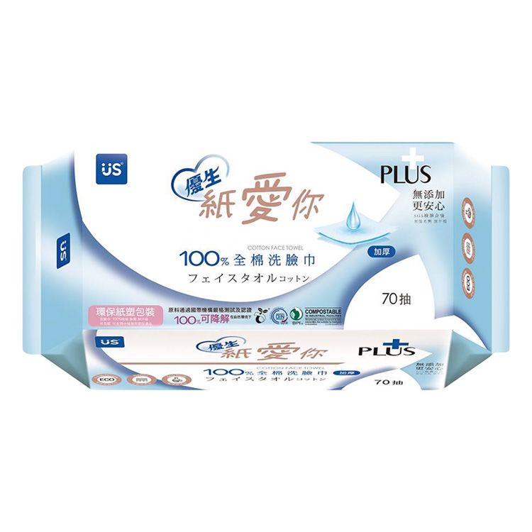 US BABY 優生~紙愛你純棉洗臉巾(特厚型)70抽