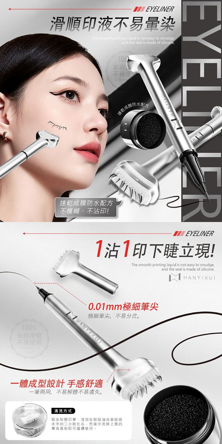 - 2in1一蓋定型、懶人美睫眼線印章