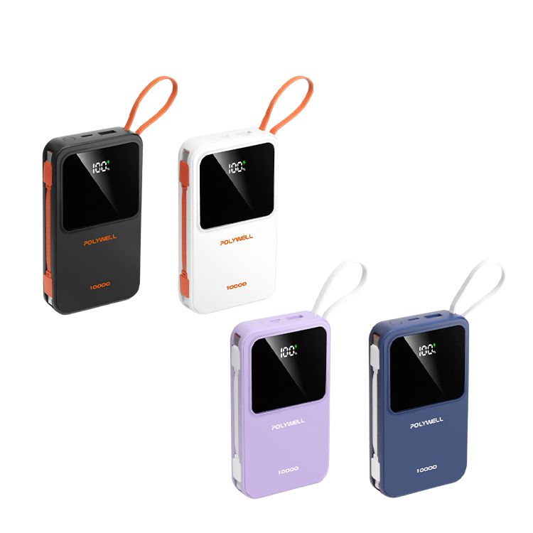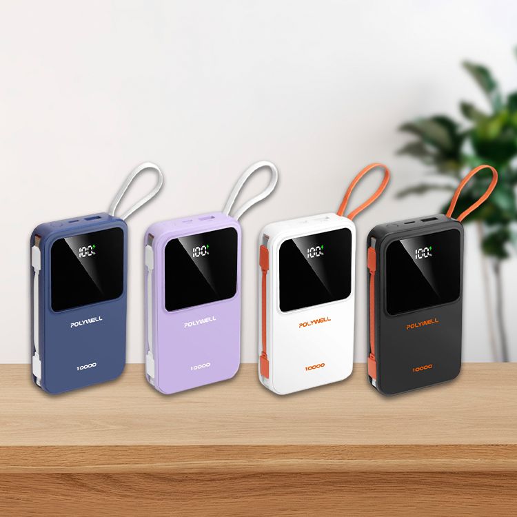 Polywell 寶利威爾~10000毫安自帶線數顯行動電源(1入) 款式可選