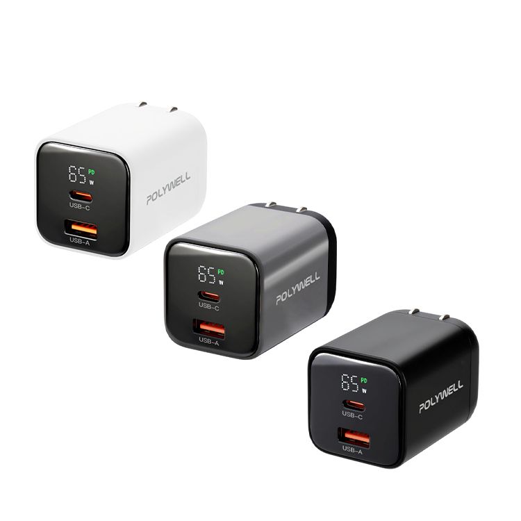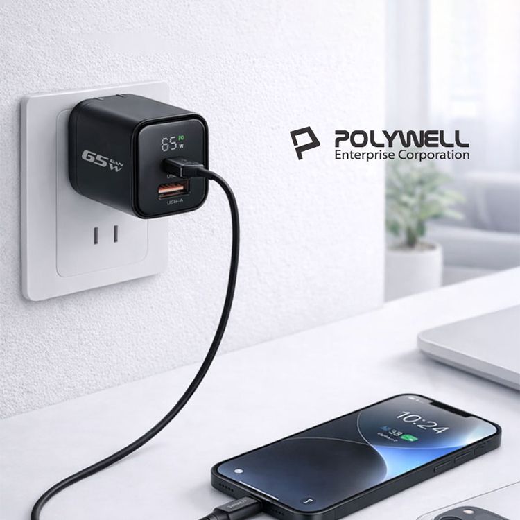 Polywell 寶利威爾~65W數顯雙孔PD快充頭(1入) 款式可選