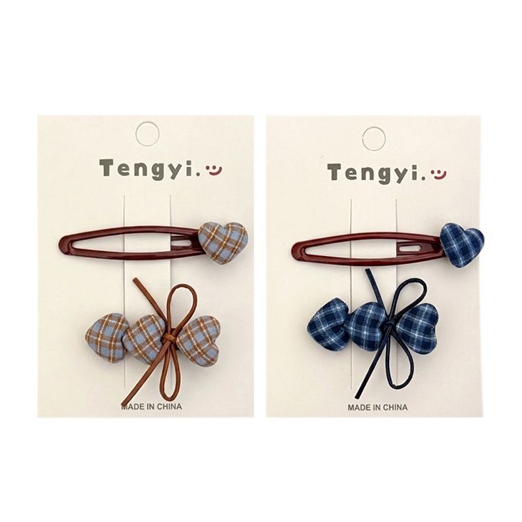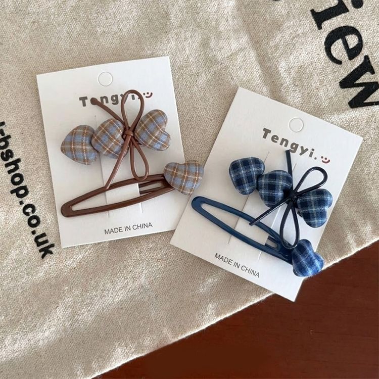 - 格紋愛心髮夾