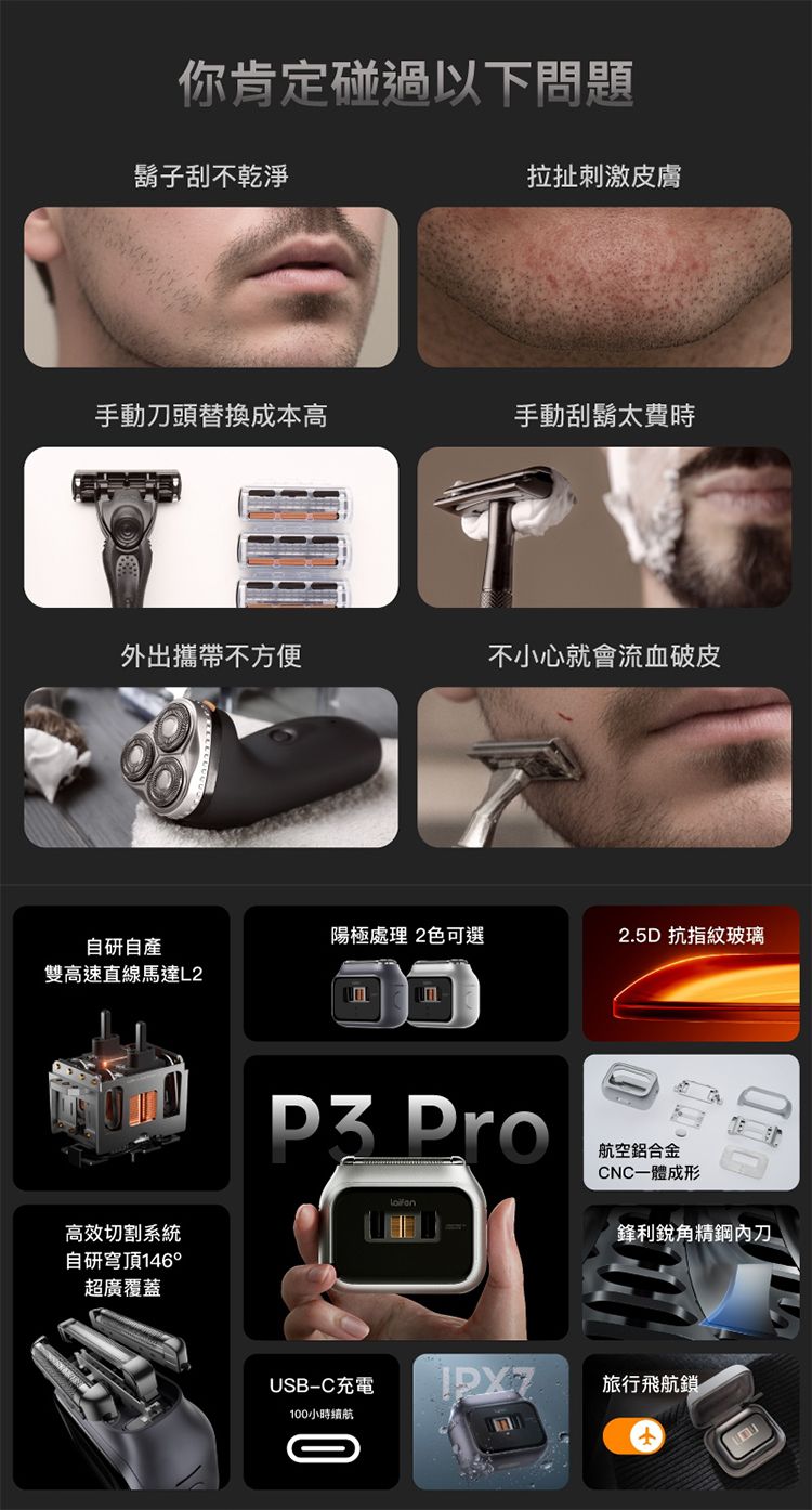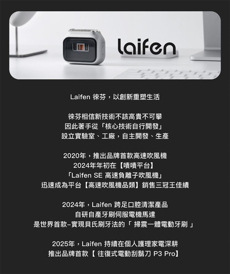 台灣代理 Laifen 徠芬~P3_Pro往復式電動刮鬍刀 款式可選