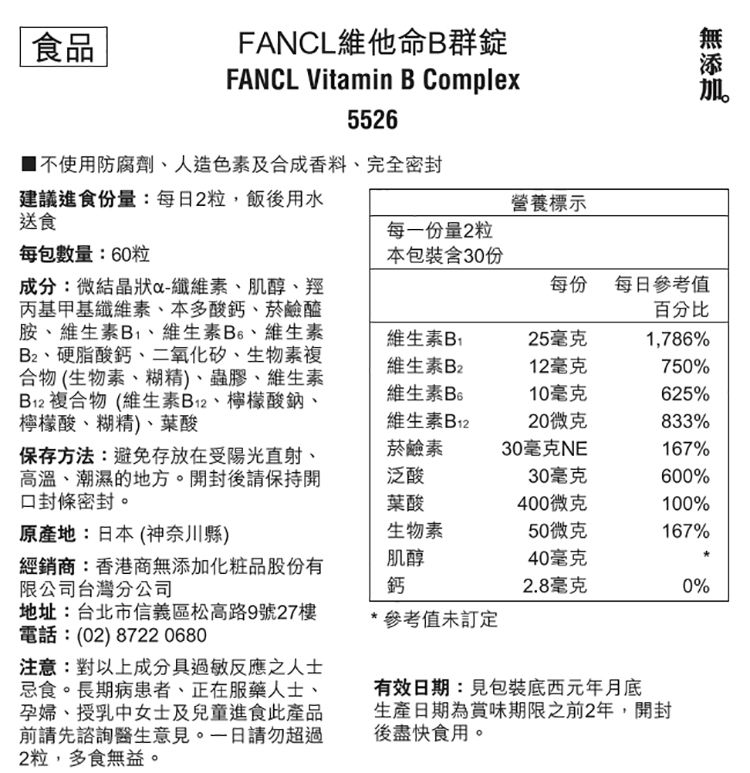 芳珂FANCL~維他命B群錠(30日)60粒