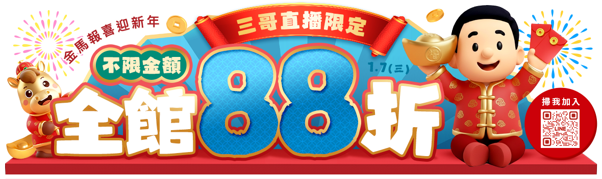 全館不限金額88折!